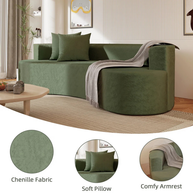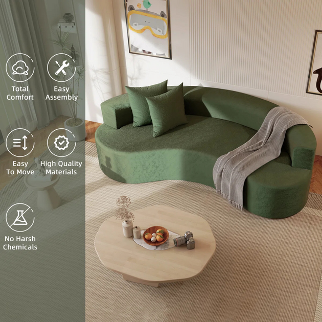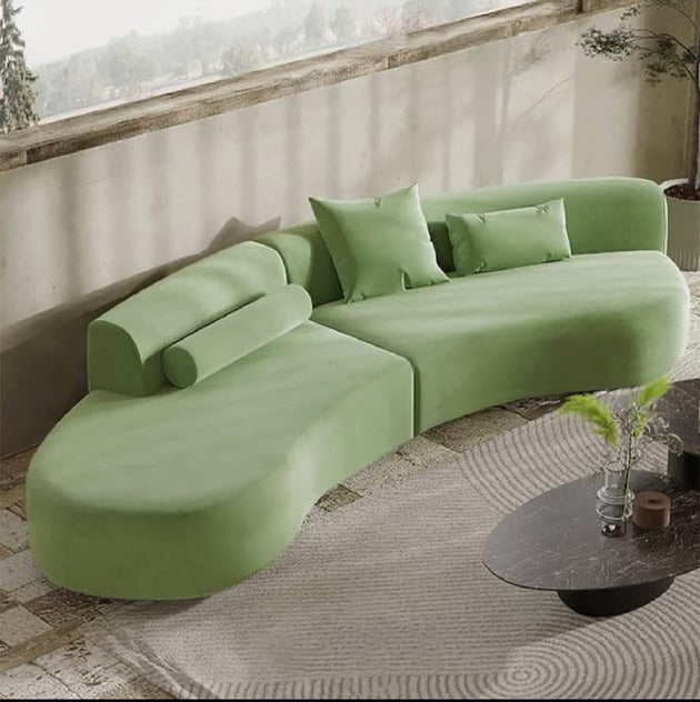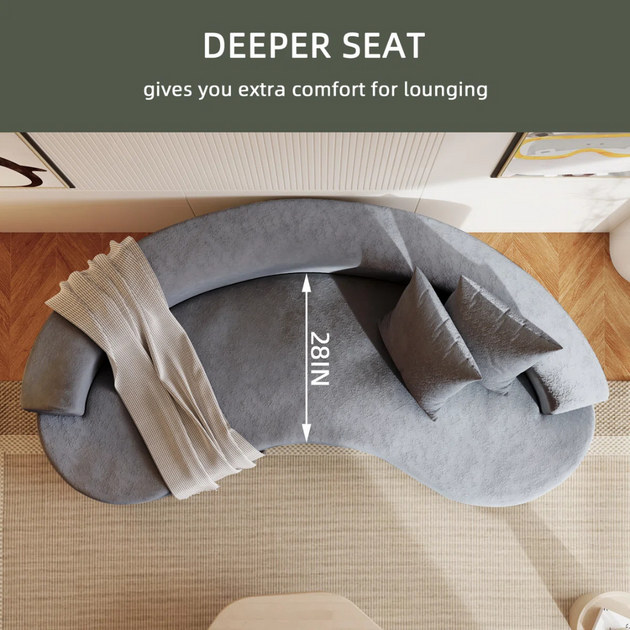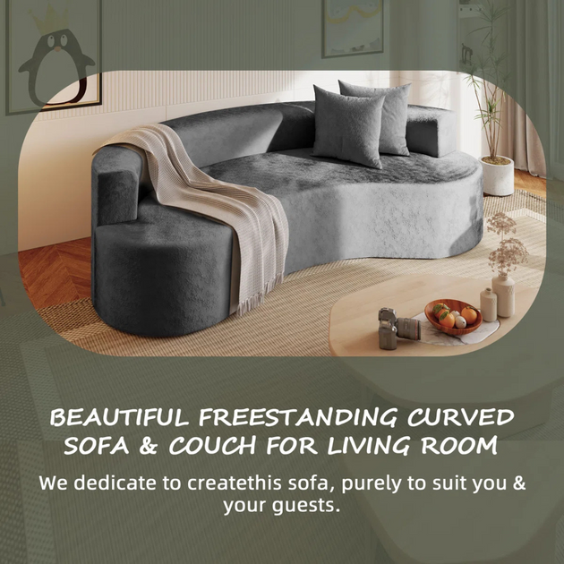 141" Velvet Upholstery Oversized Curved Sofa| Shine Wood Art