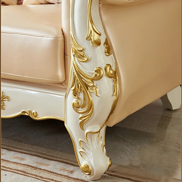 American Luxury Solid Wood Carved Sofa 88.98'' Leather Sofa| Shine Wood Art