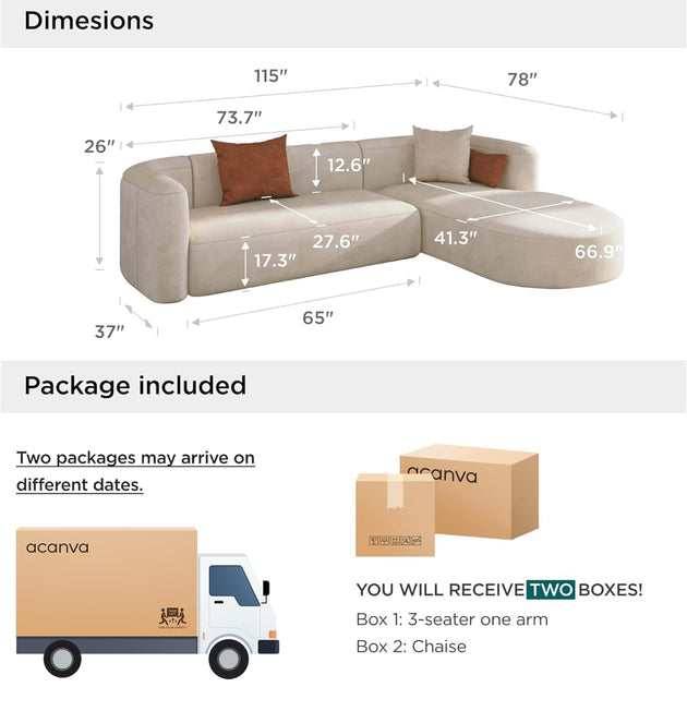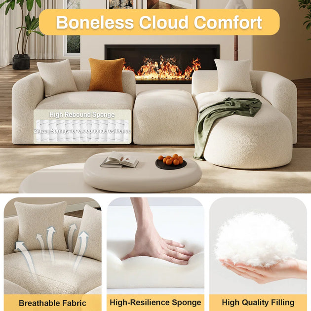 157" Modern Sectional Sofa With Curved Aesthetic