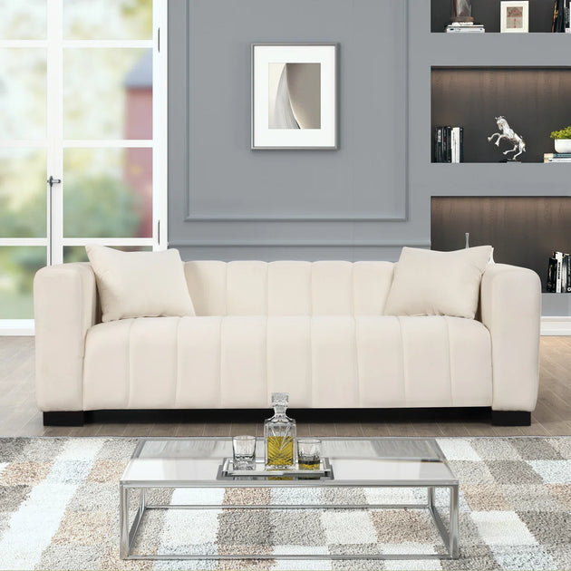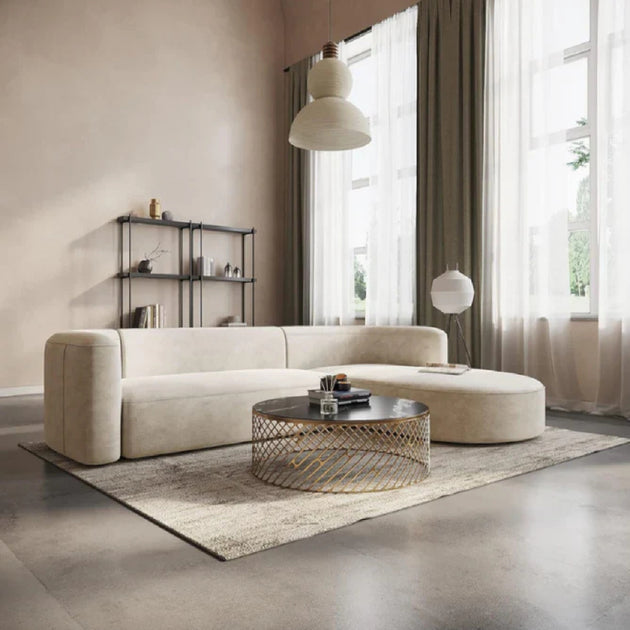 Modern Style Living Room Interior Curved Lounger Off White Curved Seating Sofa 2-Piece Sofa (Beige - Velvet)| Shine Wood Art