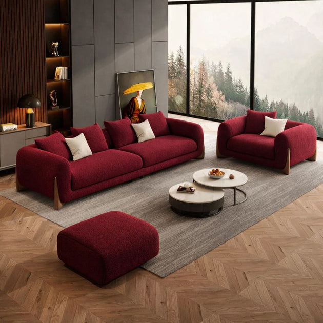 Mariyan by Shine Wood Art – Bouclé Upholstered 3-Seater Sofa with Loveseat