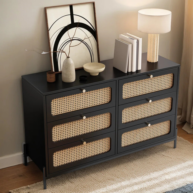 Solid Teak Wood 47" Wide 6-Drawer Dresser – Premium Storage with Natural Elegance