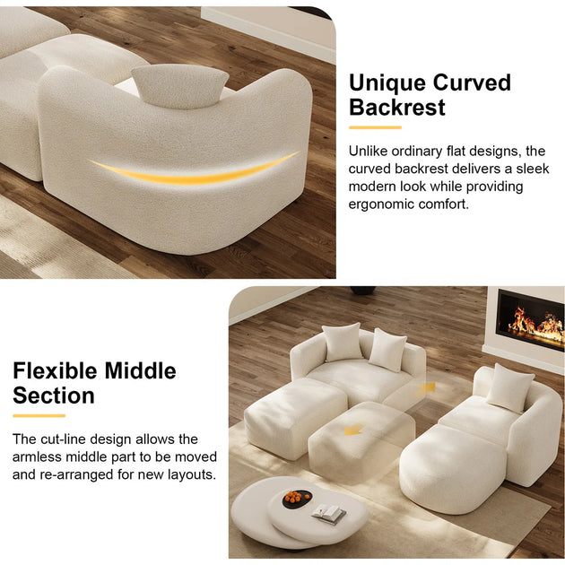 119.69"W Modern Curved Modular Sectional Sofa – No Assembly Needed