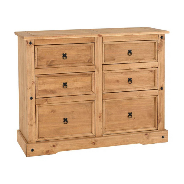 Rustic Style Teak Wood 6-Drawer Double Dresser – Pine Chest for Warm Bedroom Charm