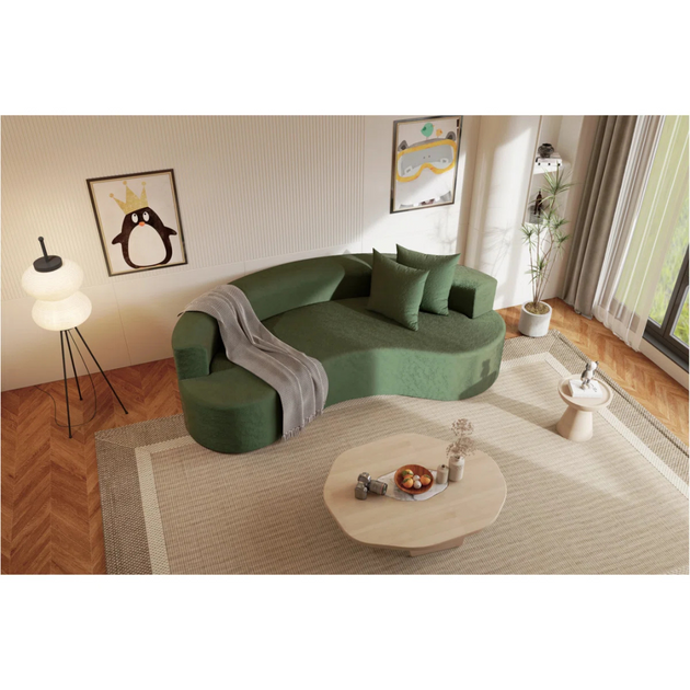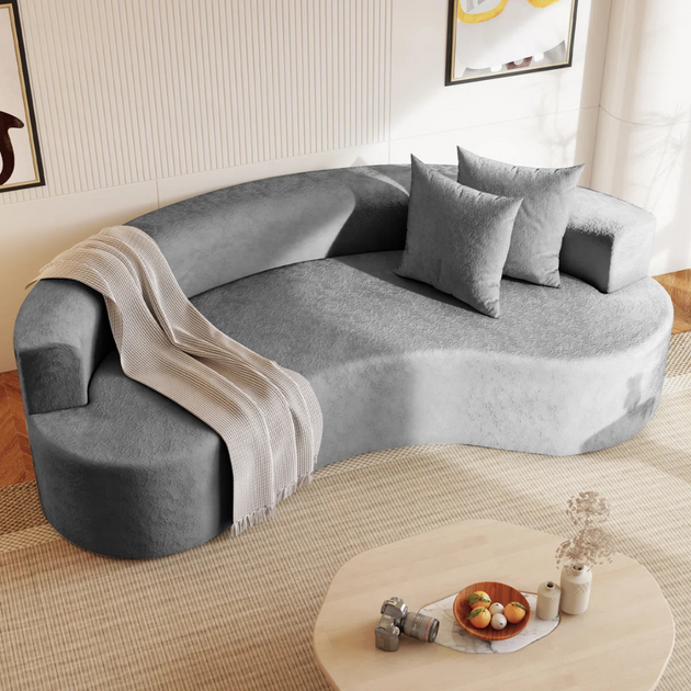 142" Wide Upholstered Round-Shaped Curved Sofa| Shine Wood Art
