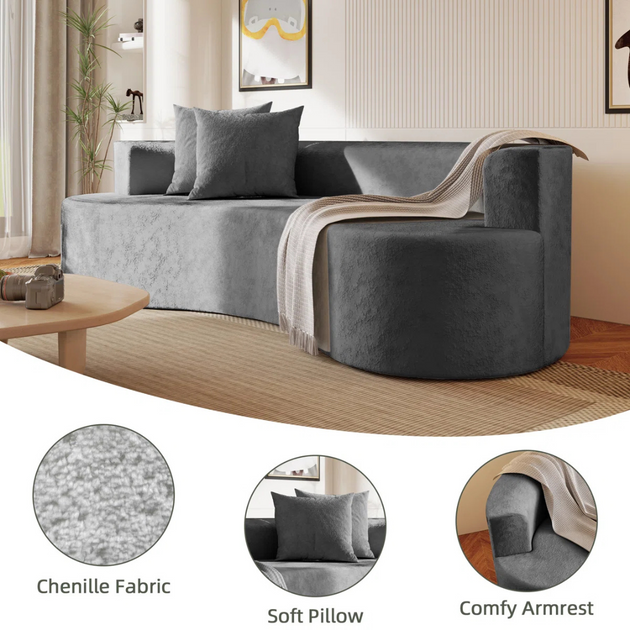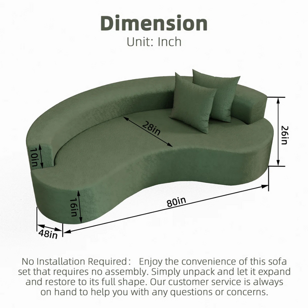 80'' Modern Sectional Sofa Soft Curved Backrest Lamb Velvet Comfy Cloud Couch with 2 Pillows Deep Seat for Living Room Furniture Sets, Apartment