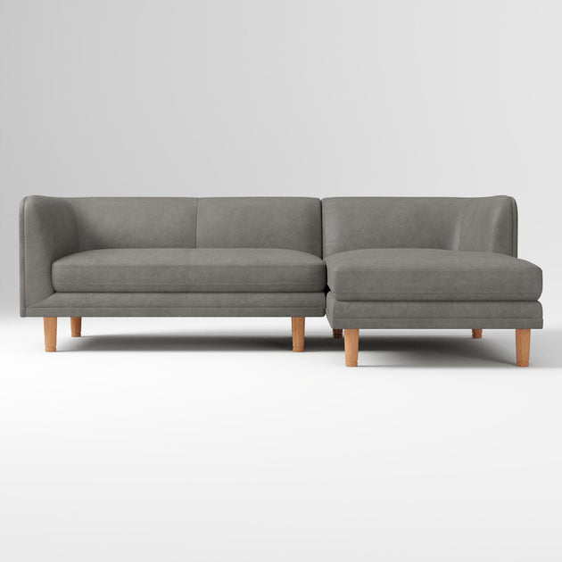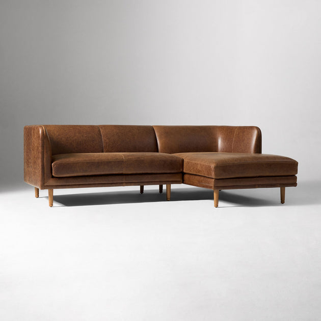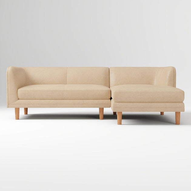 Marcel by Shine Wood Art – Leather 2-Piece Chaise Sectional, 95"–105" Versatile Seating