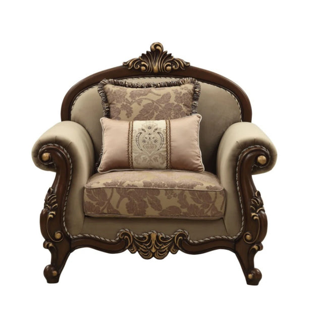 Shine Wood Art 49" Wide Velvet Armchair in Beige/Walnut