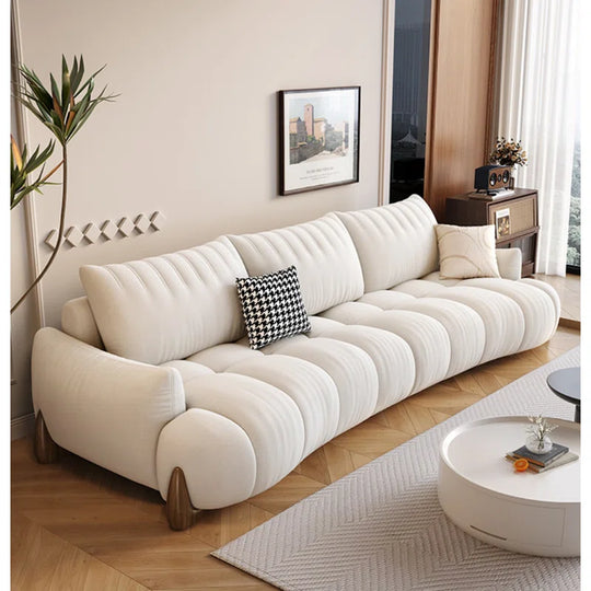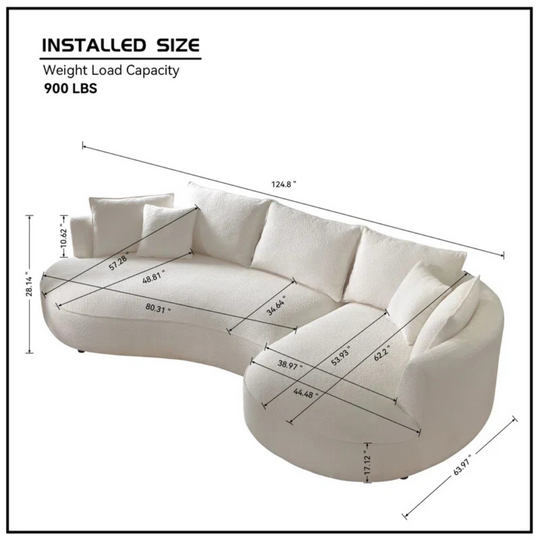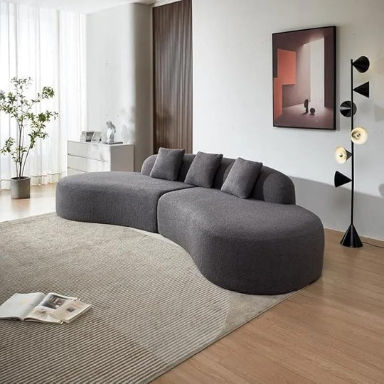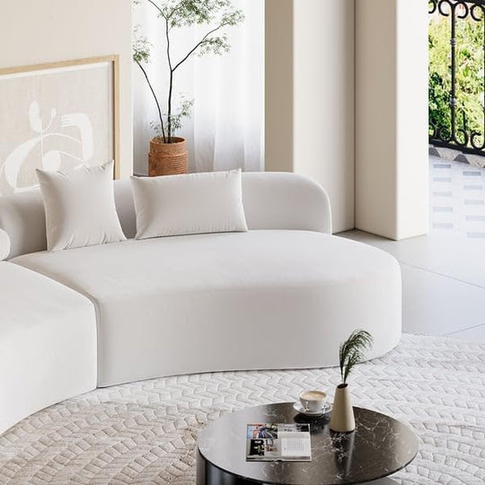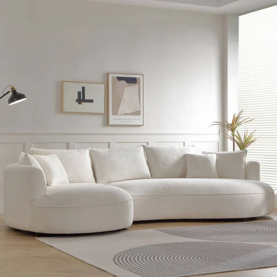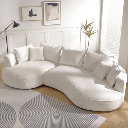 Modern Sectional Off-White Bouclé Fabric Sofa | Curved Chic for Luxe Living