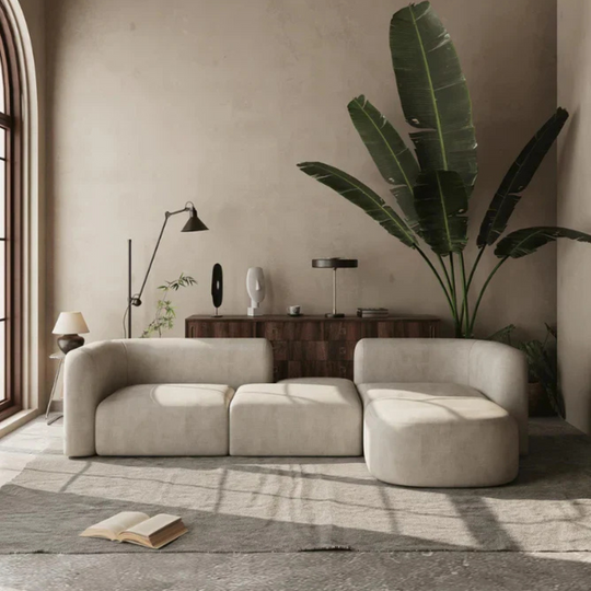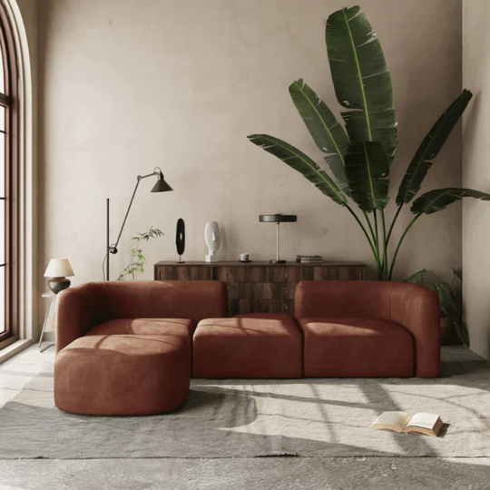 Modular Modern Sectional Sofa in Rich Suede – 4-Seater Lounge Couch for Living Room