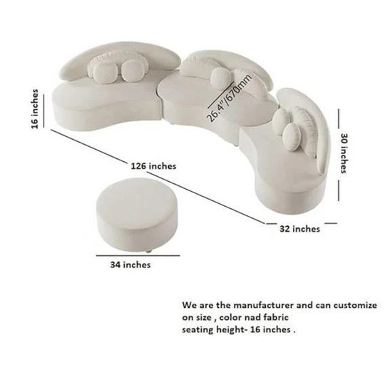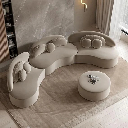 Modern Style Living Room Interior Curved Lounger Off White Curved Seating Sofa 2-Piece Sofa (Beige - Velvet)| Shine Wood Art
