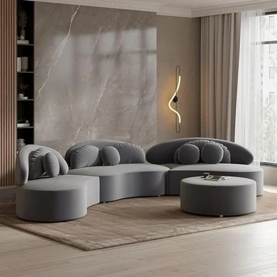 Modular Sofa Curved Design Low Height Velvet Upholstered luxury Sofa Set