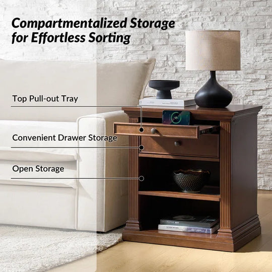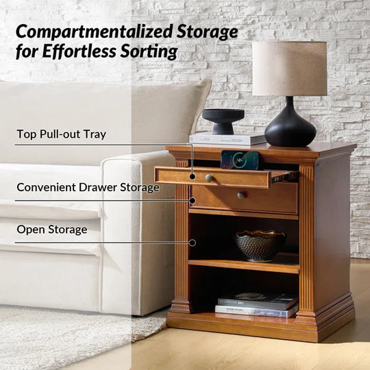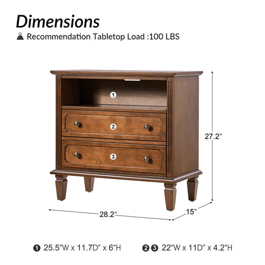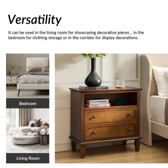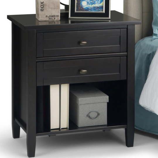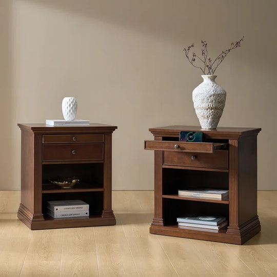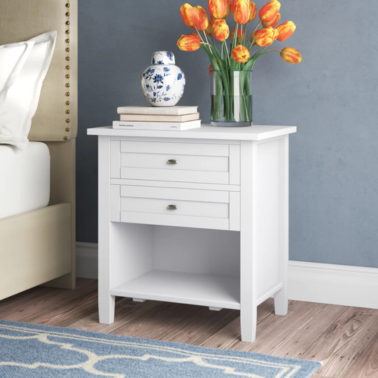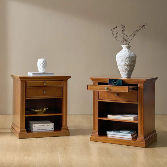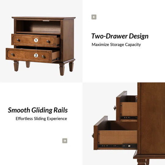 Shine Wood Art 24"W Solid Wood Bedside Table with Two Drawers – Classic Design Meets Modern Function