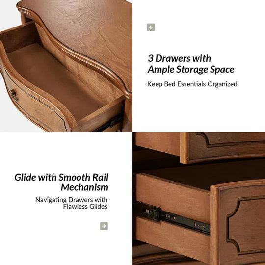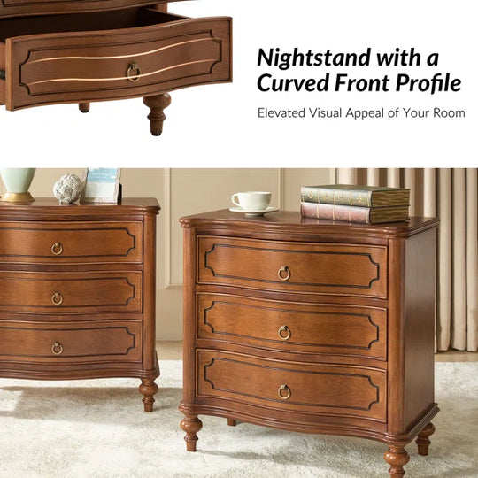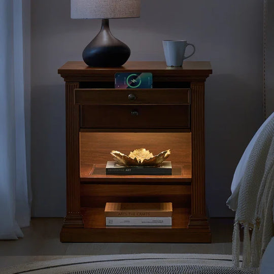 Shine Wood Art 28'' W Traditional Curves Nightstand with Charging Station and Solid Wood Legs (Set of 2)