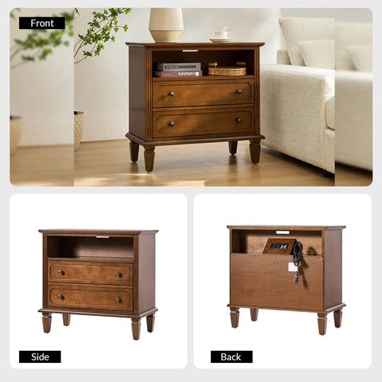 Shine Wood Art 27.2'' H Traditional 2-Drawer Nightstand with Built-In Outlets and Solid Wood Legs and Open Shelve (Set of 2)