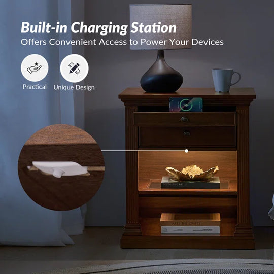Shine Wood Art 26.75'' H Transitional Nightstand with Built-In Power Station and LED Light Strip (Set of 2)