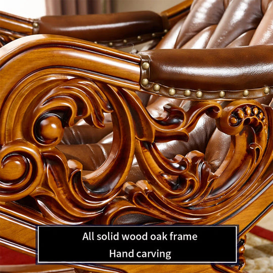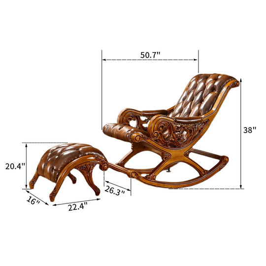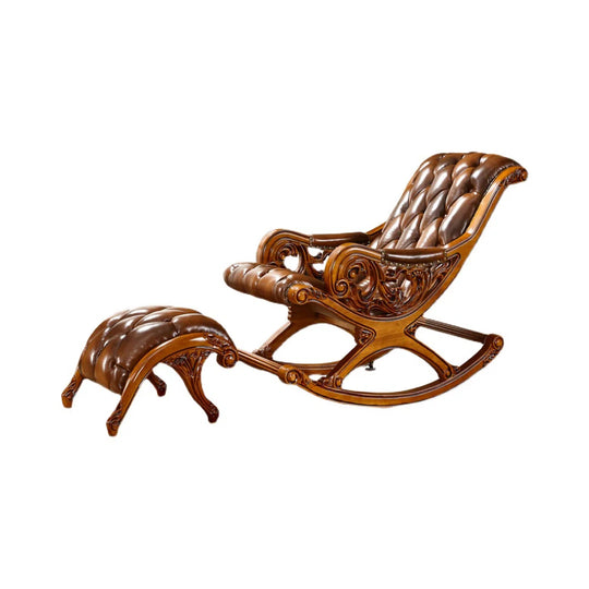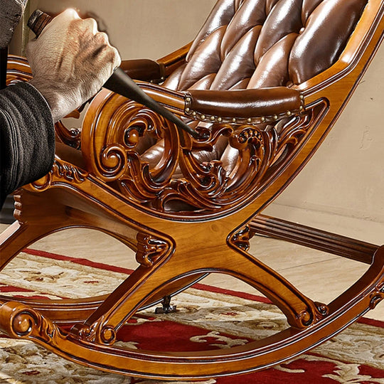Shine Wood Art American Leather Chair Solid Wood Leisure Chair Solid Wood Rocking Chair