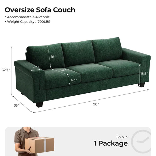 Shine Wood Art 90-Inch Upholstered Sofa for the Living Room.