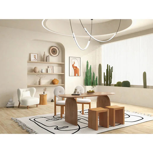 No reviewsAbout this item - Timeless Style Meets Solid Durability Bring refined warmth and modern charm into your dining space with this 70.9" Solid Teak Wood Dining Table in an Oval Shape. Inspired by a fusion of Scandinavian and Japanese design, this table features clean curves and a smooth oval surface that enhances both aesthetics and conversation flow. Here’s what makes it special: Scandinavian-Japanese Fusion Design: Soft gray wood finish with minimalist lines complements rustic, modern, or transitional interiors. High-Quality Construction: Crafted from kiln-dried rubberwood with a thick 1.8" tabletop—resistant to warping and humidity. Seamless Social Dining: Dual pedestal base ensures plenty of legroom, comfortably seating 6–8 people. Multipurpose Versatility: Ideal for everyday meals or festive gatherings—supports up to 330 lbs. Child-Friendly Corners: Smooth rounded edges and base footrests provide both comfort and safety. Rich Aesthetic Finish: Matte-sealed distressed surface reveals natural wood grains for an elevated, designer look. Perfect for modern homes looking to balance form, function, and a touch of elegance. Product Specifications Category Details Product Type Dining Table Shape Oval Design Style Scandinavian-Japanese Fusion Top Material Solid Teak Wood (Kiln-Dried Rubberwood) Base Material Solid Wood Finish Distressed Matte with Visible Wood Grain Color (Top/Base) Red Wood / Beige Seating Capacity 6 (Comfortably fits up to 8)...Regular price Rs. 98,000.00Regular price Rs. 98,000.00 -