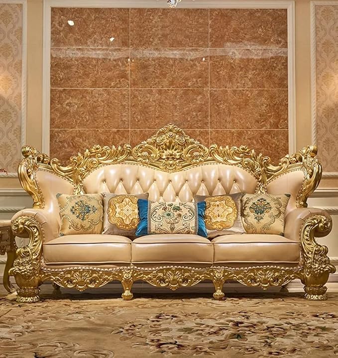 American Luxury Solid Wood Carved Sofa 88.98'' Leather Sofa| Shine Wood Art