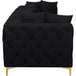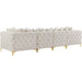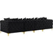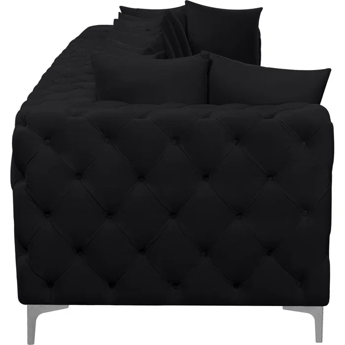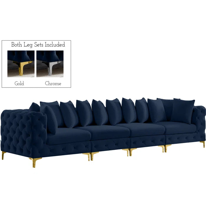 Lean back and relax on this sofa. Featuring soft velvet upholstery with deep button tufting, this sofa adds a bold touch to any living space. A complete set of gold and chrome legs are included, so you can change it up to suit your home décor. This sofa is modular, so you can create infinite configurations with it, which are easily attached using the latch underneath the frame. Its contemporary design is perfect for the modern home.