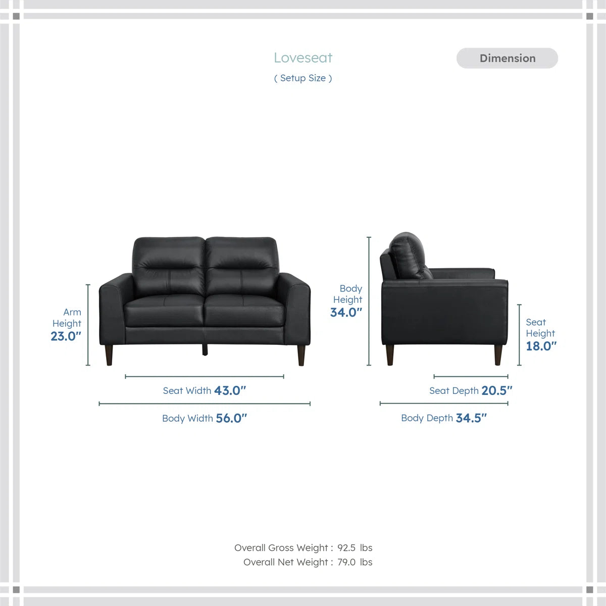 Loveseat: 34" H × 56" W × 34.5" D | Seat: 18" H × 43" W × 20.5" D