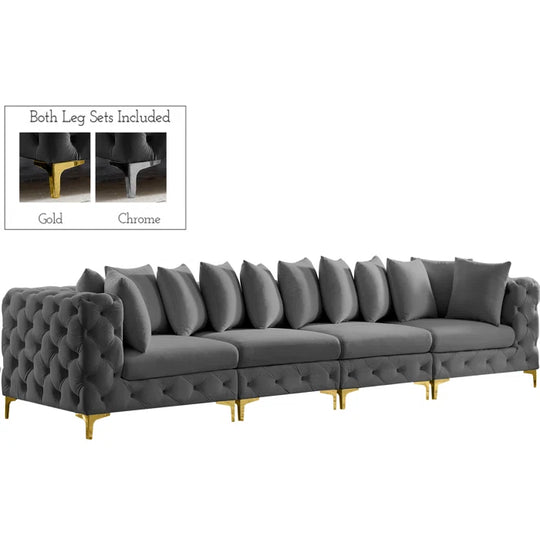 Luxury Velvet Upholstered Curved Sofa Set – Modern 3+Ottoman Living Room Furniture, Wooden Frame & Best Foam