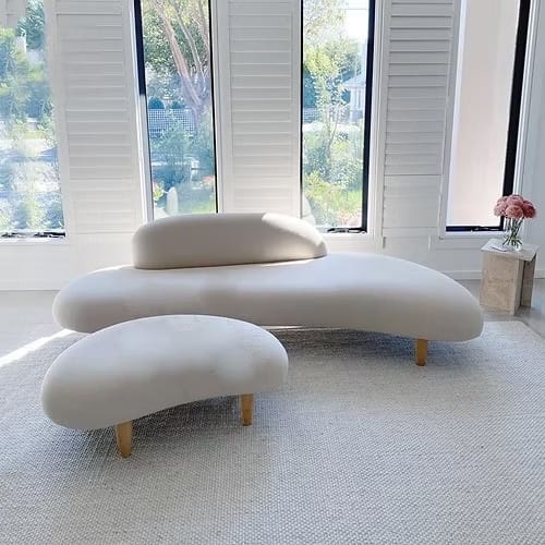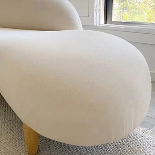 Modern Bouclé Fabric Curved Sofa with Integrated Side Coaster – Luxury Design