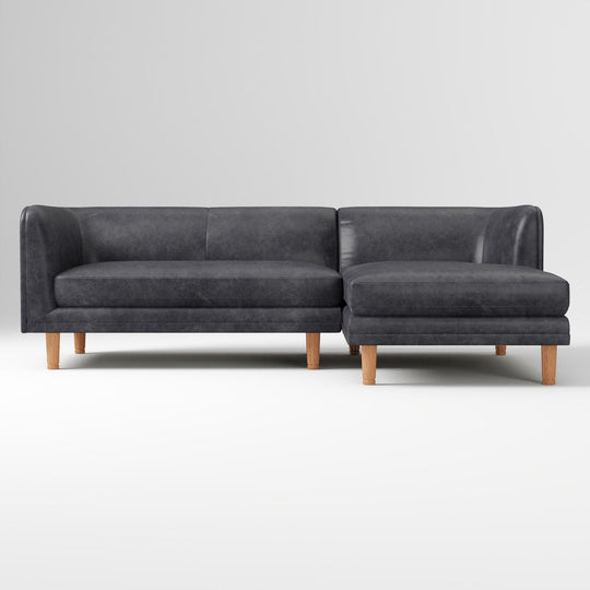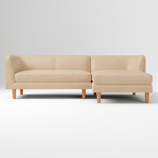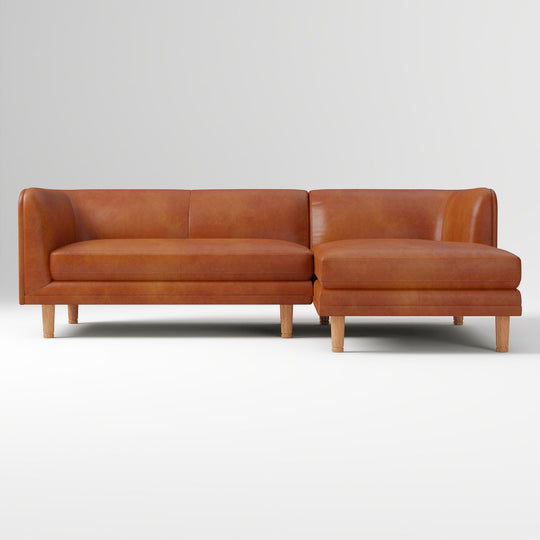 Marcel by Shine Wood Art – Leather 2-Piece Chaise Sectional, 95"–105" Versatile Seating