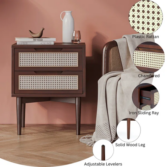 Shine Wood Art 24"W Solid Wood Bedside Table with Two Drawers – Classic Design Meets Modern Function