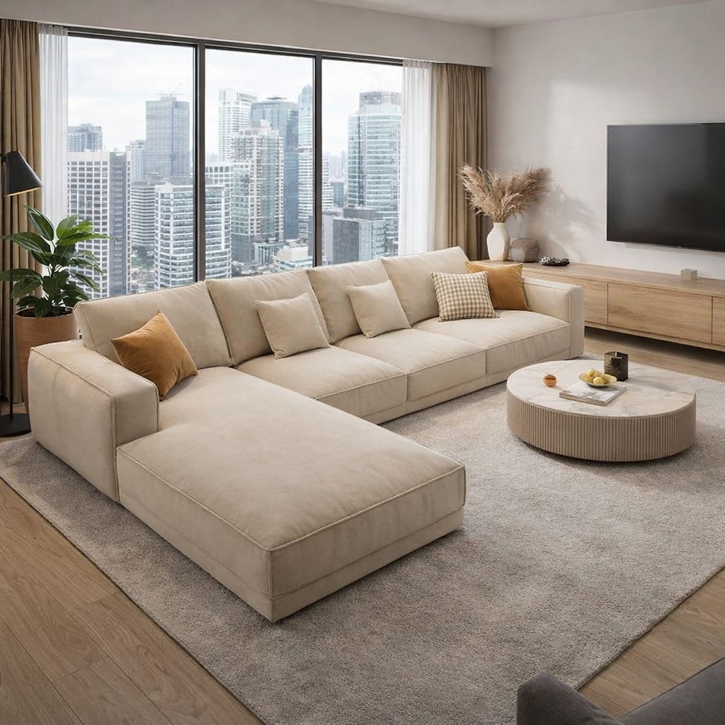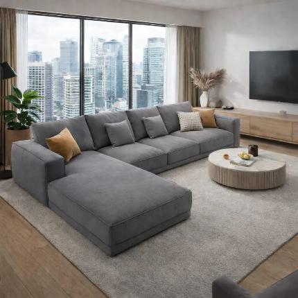 Whether placed in a modern living room, luxury apartment, family lounge, or designer interior, this elegant sectional sofa delivers the perfect balance of comfort, functionality, and modern design.