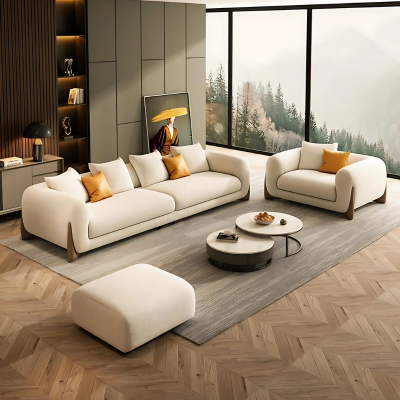 Modern Classic 4 Seater Sofa Set with Ottoman Luxury Living Room Furniture Comfortable 4 Person Sofa