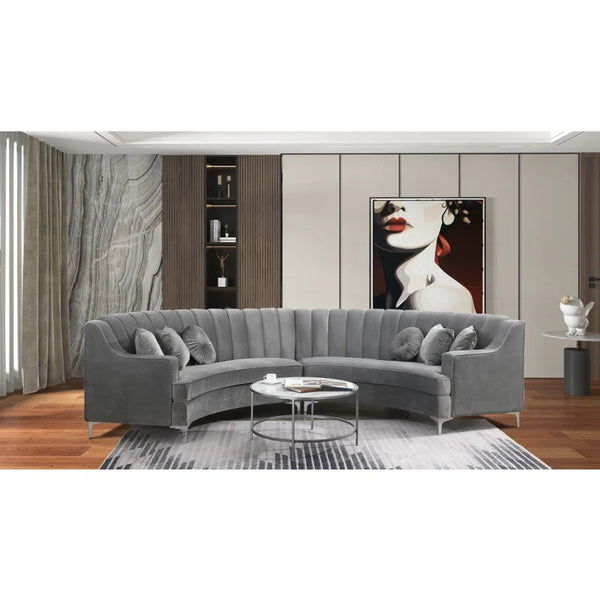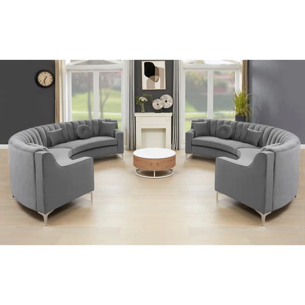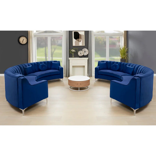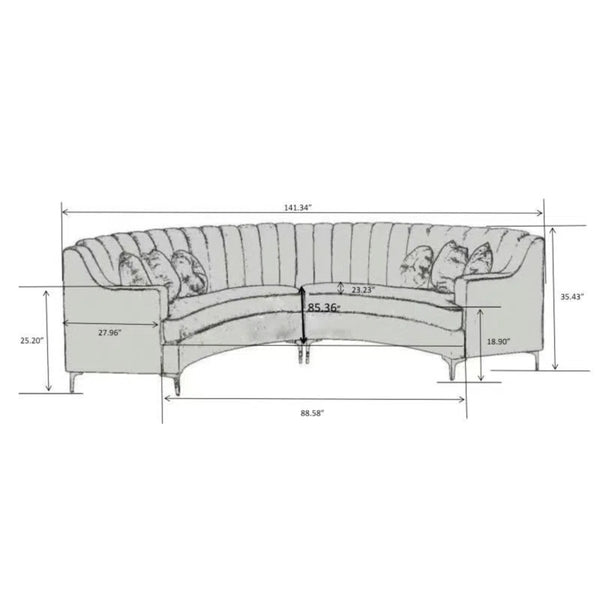 142" Wide Upholstered Round-Shaped Curved Sofa| Shine Wood Art