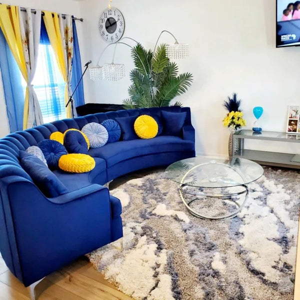 141" Velvet Upholstery Oversized Curved Sofa| Shine Wood Art