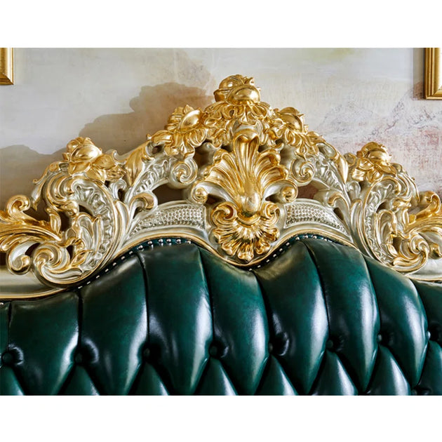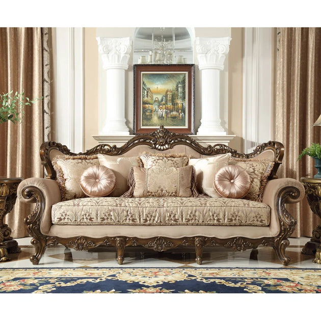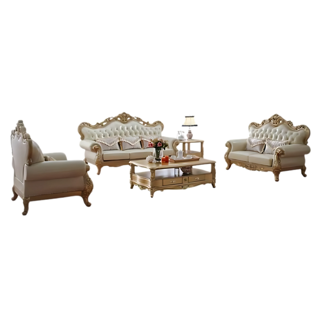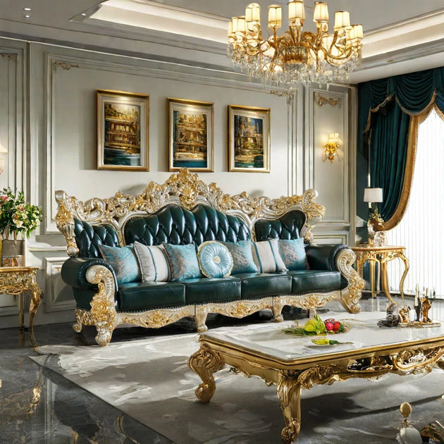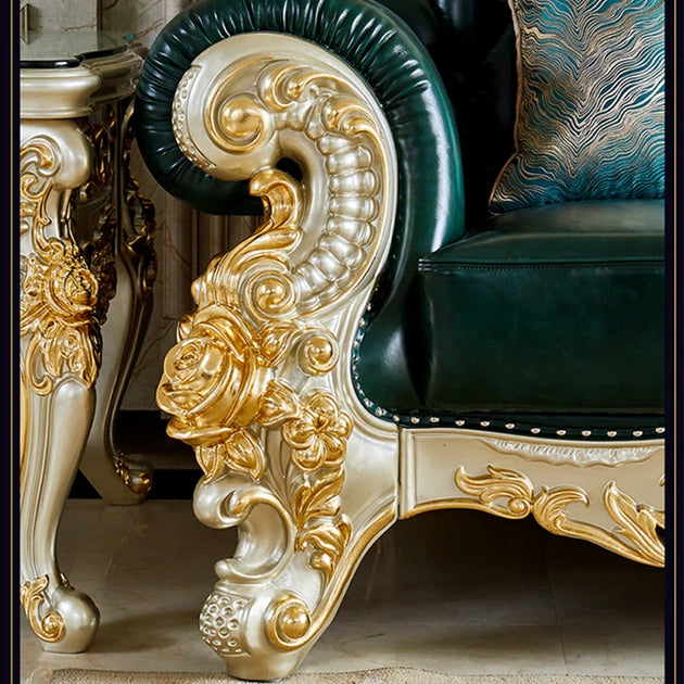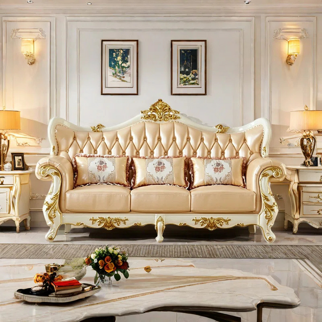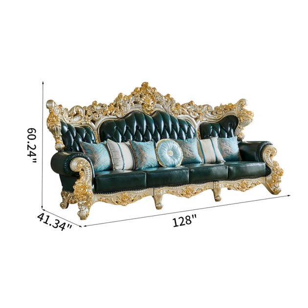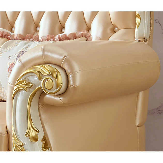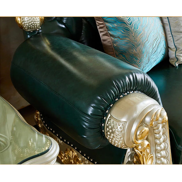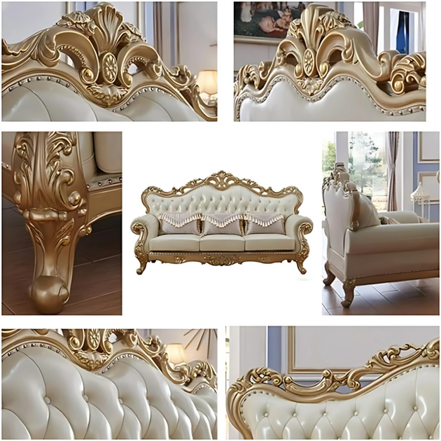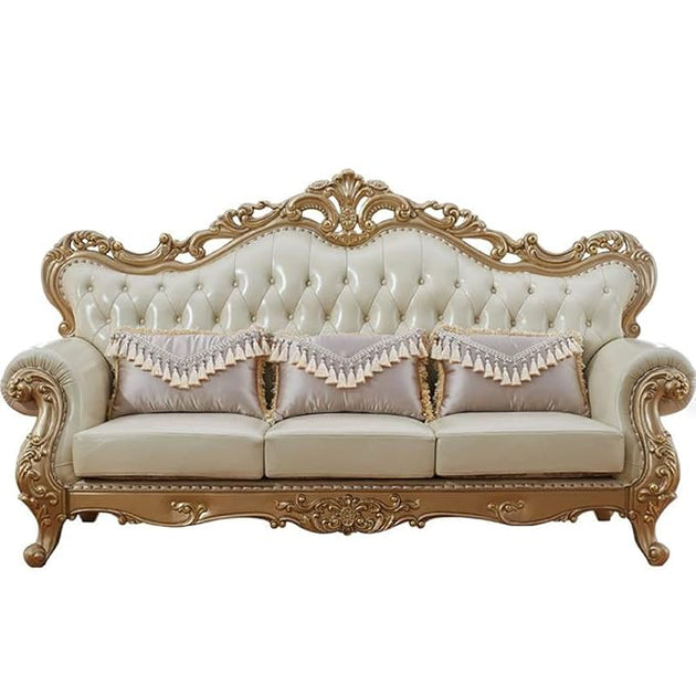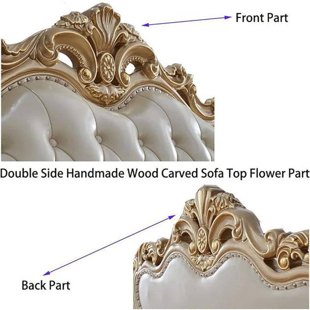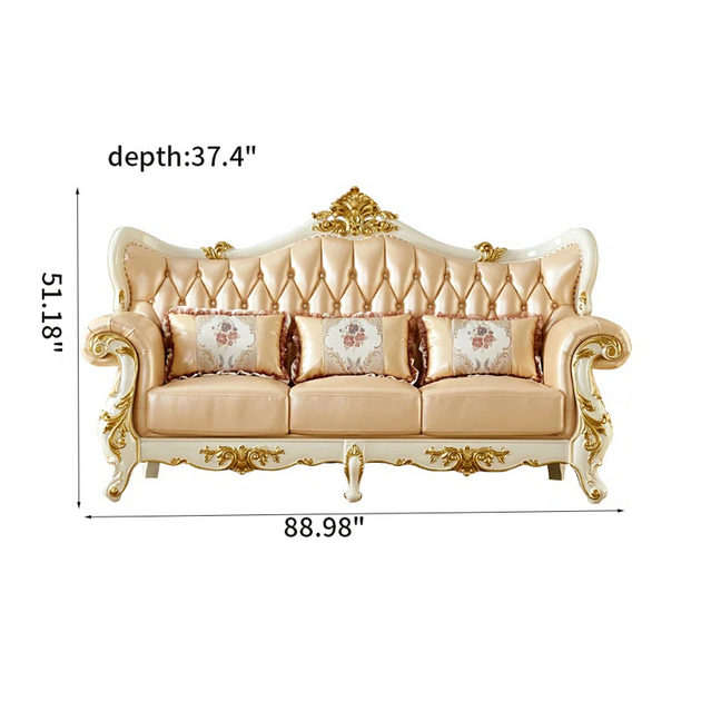 American Luxury Solid Wood Carved Sofa 88.98'' Leather Sofa| Shine Wood Art