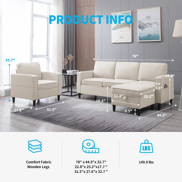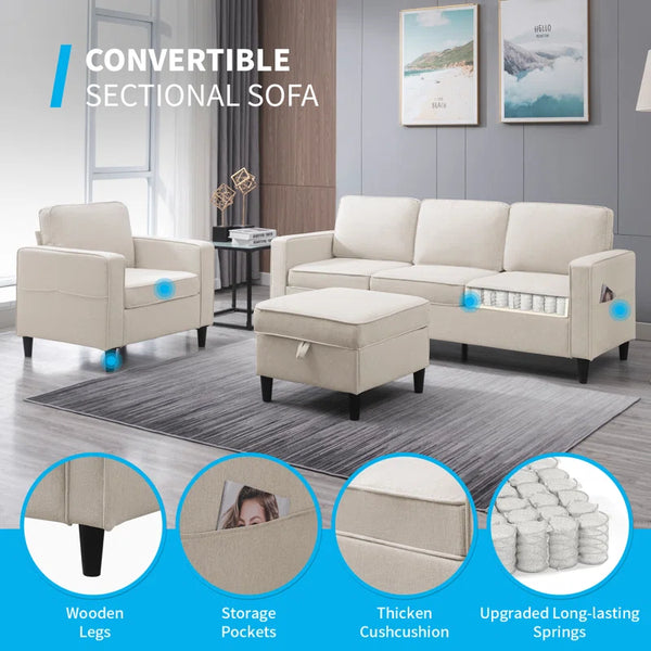 3 - Piece Living Room Sofa Set| Shine Wood Art