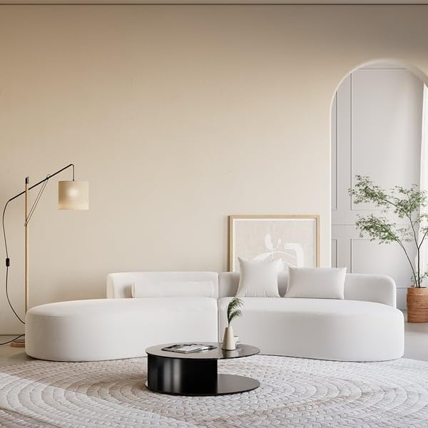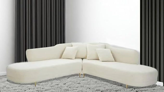 Modern Style Living Room Interior Curved Lounger Off White Curved Seating Sofa 2-Piece Sofa (Beige - Velvet)| Shine Wood Art