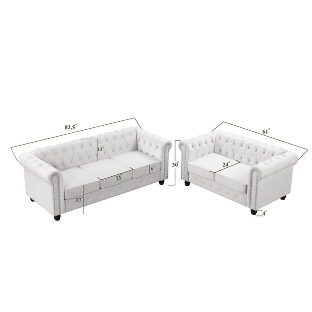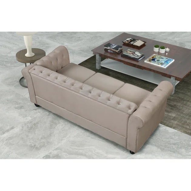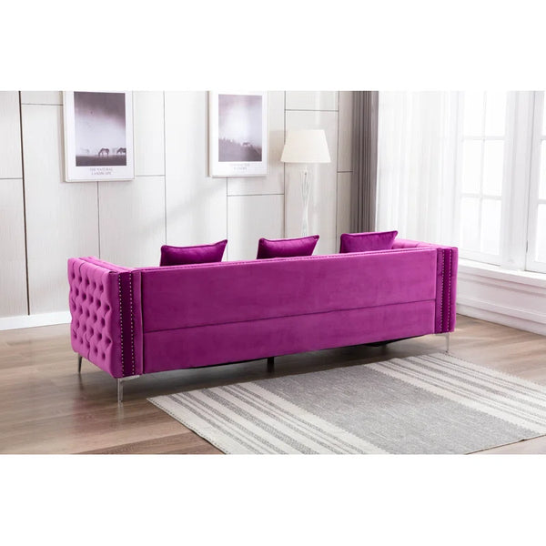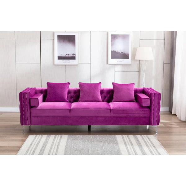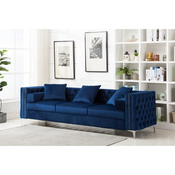 104" Velvet Square Arm Chesterfield Upholstered Sofa| Shine Wood Art