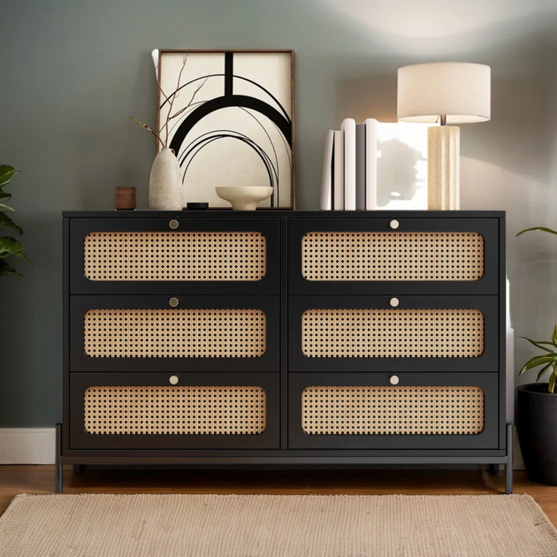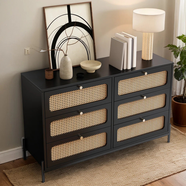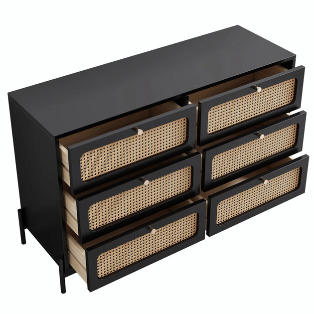Solid Teak Wood 47" Wide 6-Drawer Dresser – Premium Storage with Natural Elegance