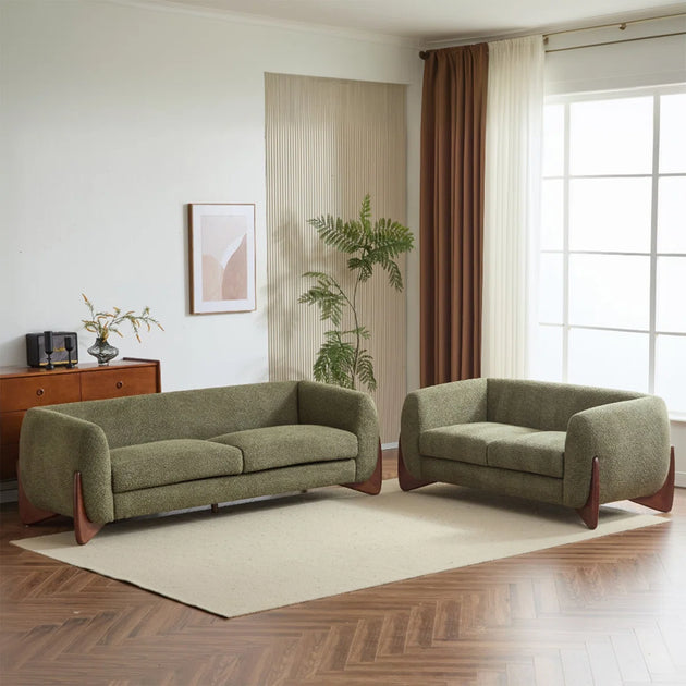 Mariyan by Shine Wood Art – Bouclé Upholstered 3-Seater Sofa with Loveseat