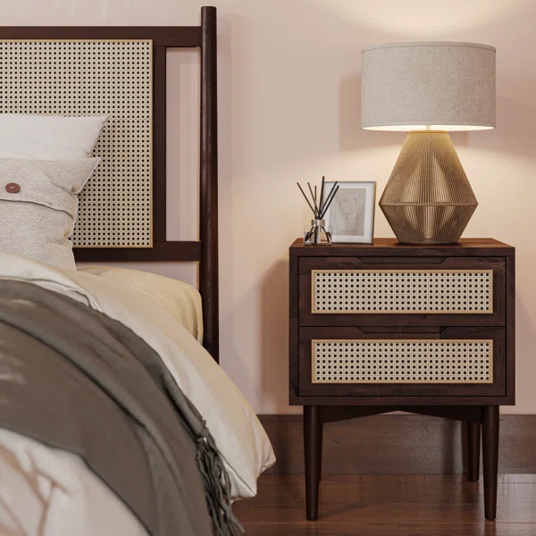 Shine Wood Art Solid Wood 2-Drawer Bedside Table