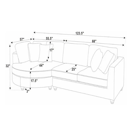 Marcel by Shine Wood Art – 2-Piece Chaise Sectional, 95"–105" Versatile Design